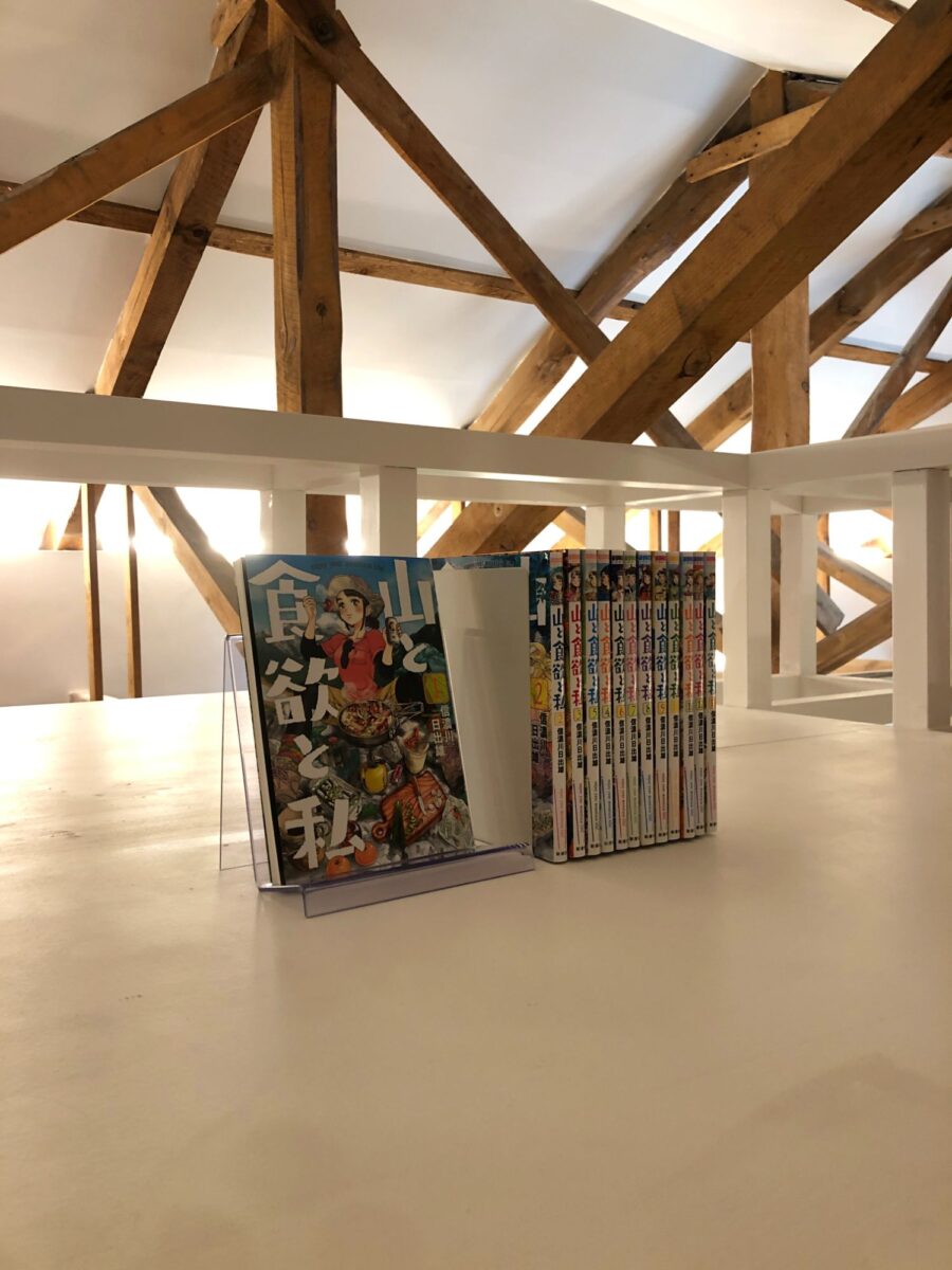 選書はそうした自然と食、自然と遊び、自然と暮らしのような観点から、滞在した人が自然を普段とは少し違ったリアリティを持って見るための本を選んだ。各部屋から登れる自分だけの屋根裏スペースには、こっそり隠れて読む場所のための漫画を用意。隠れて自分だけのスペースで漫画を読みふけってもらいたい。