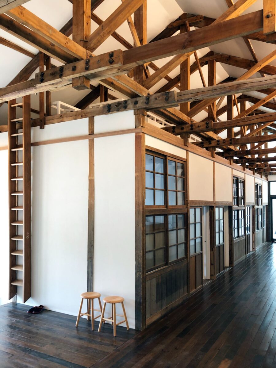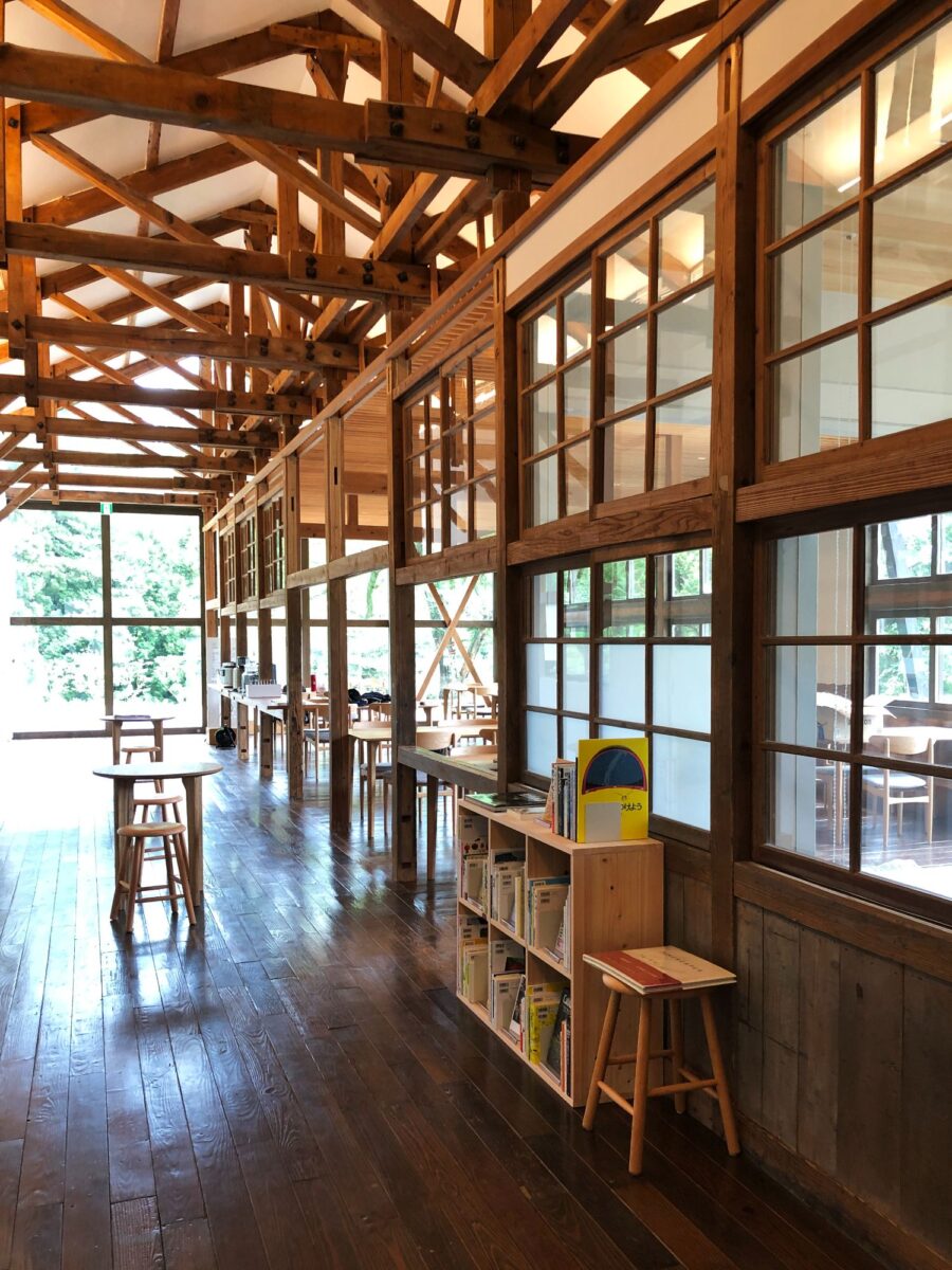 梁がむき出しの高い天井、当時の教室の面影を感じる全5室の客室、音楽体育室をそのまま生かしたカフェ。地域住民の大切な思い出をそのまま感じることのできる場所として生まれ変わった。