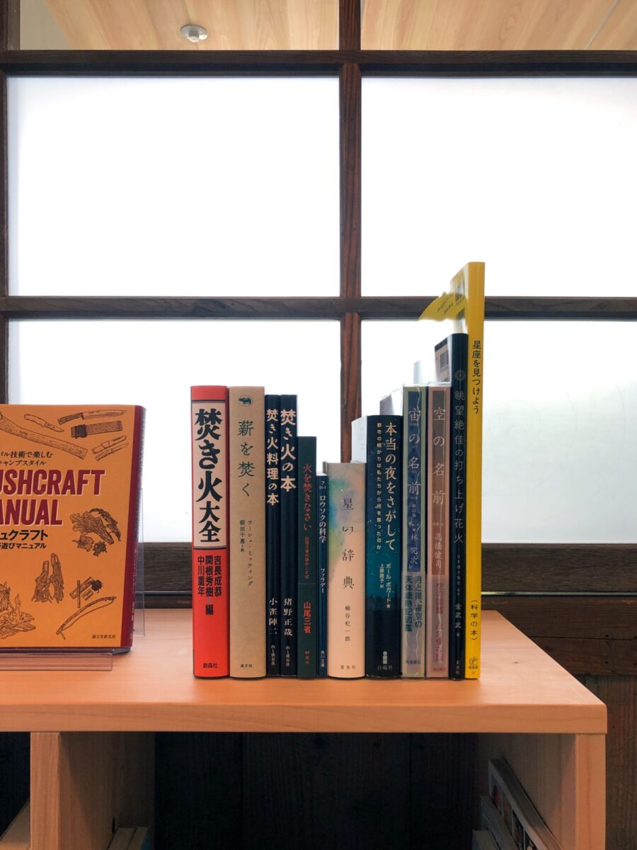 明治43年創立の旧四辻分校(小学校)をリノベーションした滞在拠点Yodge(ヨッジ)のための小さなライブラリー選書。