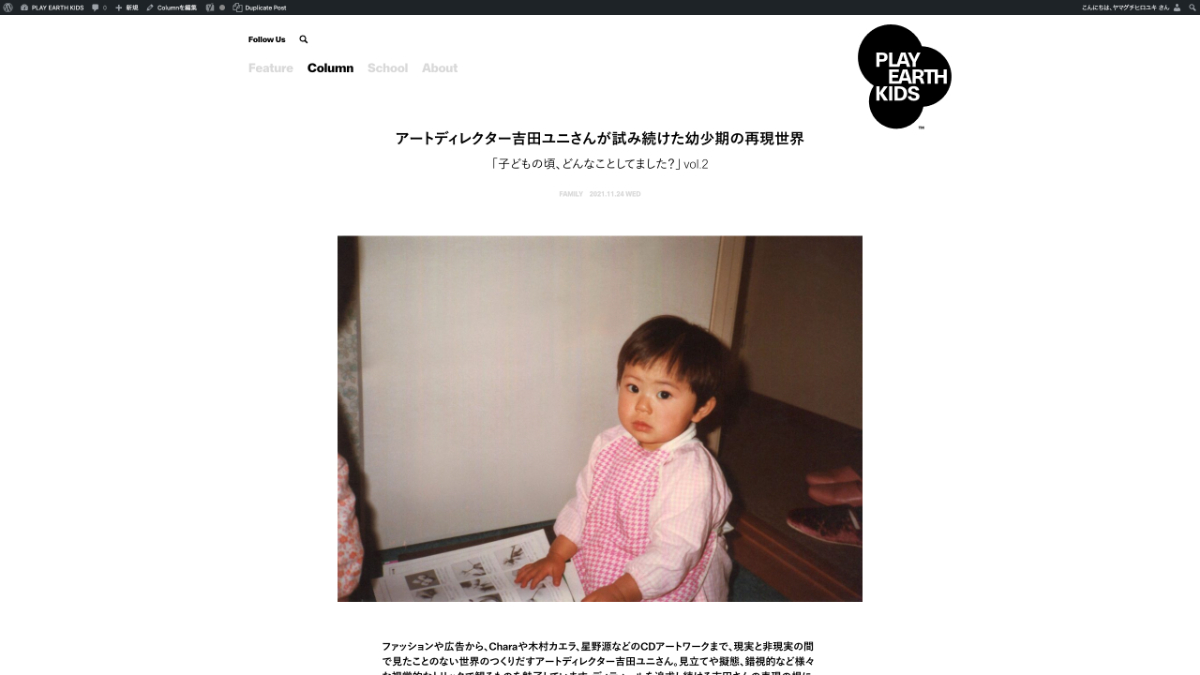 スポーツウェアメーカーのゴールドウインが展開する新業態、及び新プロジェクトである「PLAY EARTH KIDS」が運営するオウンドメディアの企画ディレクションから編集、取材、執筆までを手掛けた。