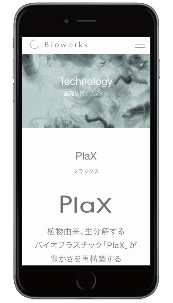 生分解性のある高機能バイオプラスチック「Plax」をプロデュースするBioworksのウェブサイトの編集とライティングを行った。