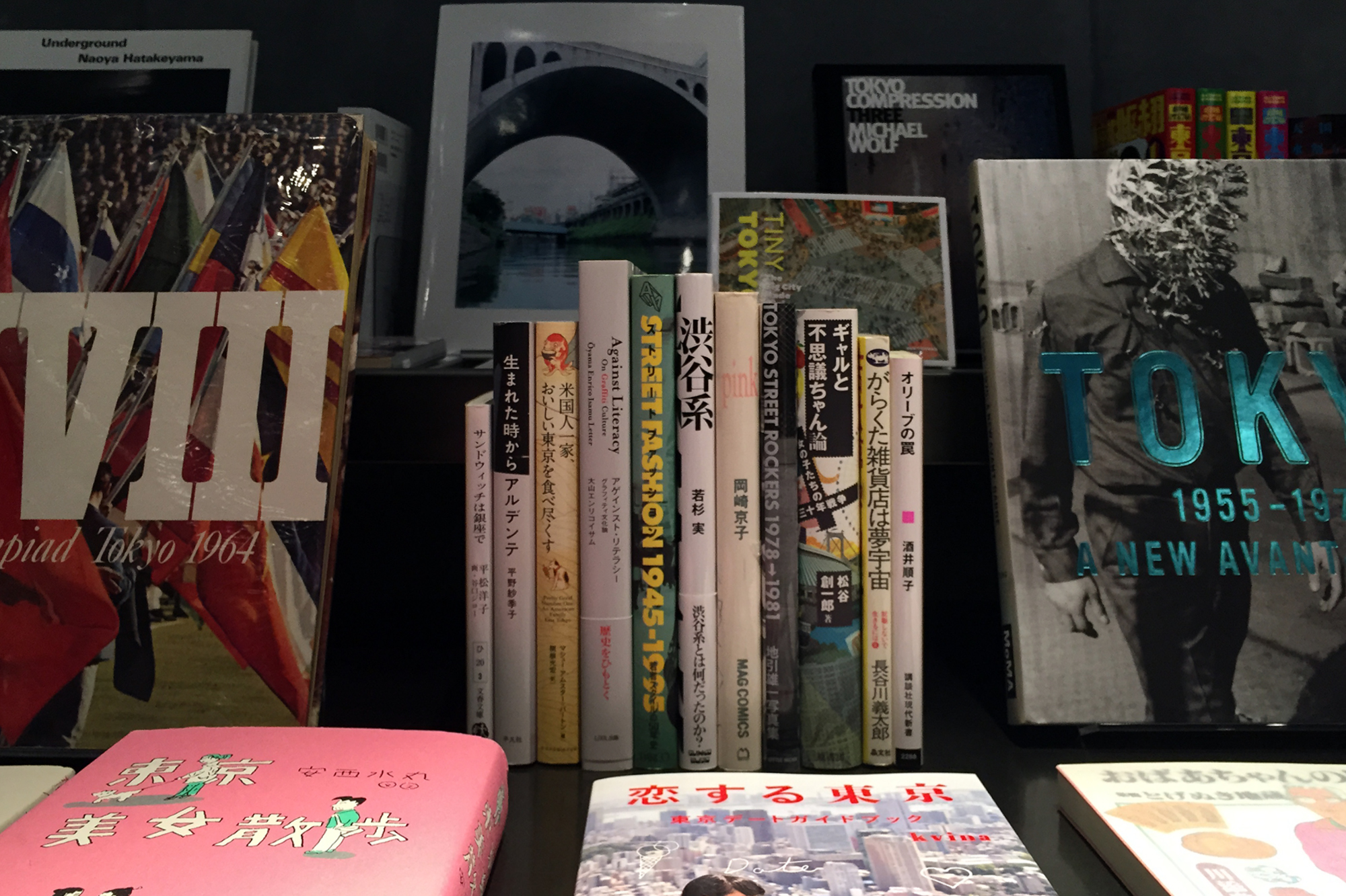 観光地としての東京ではなく、そこに生きる都市・東京を表現した選書は、ストリートスナップのような象徴的な東京を押さえつつも、Michael Wolfが山手線の満員電車を写した『TOKYO COMPRESSION』や畠山直哉が撮った渋谷川の地下暗渠の写真集『UNDERGROUND』から、無人の東京の姿を捉えた『TOKYO NOBODY』や歴史と地脈の地図を現在の東京に重ねた『アースダイバー』まで、解像度と角度を全く変えることで見えてくる東京を感じ取れるもので構成した。