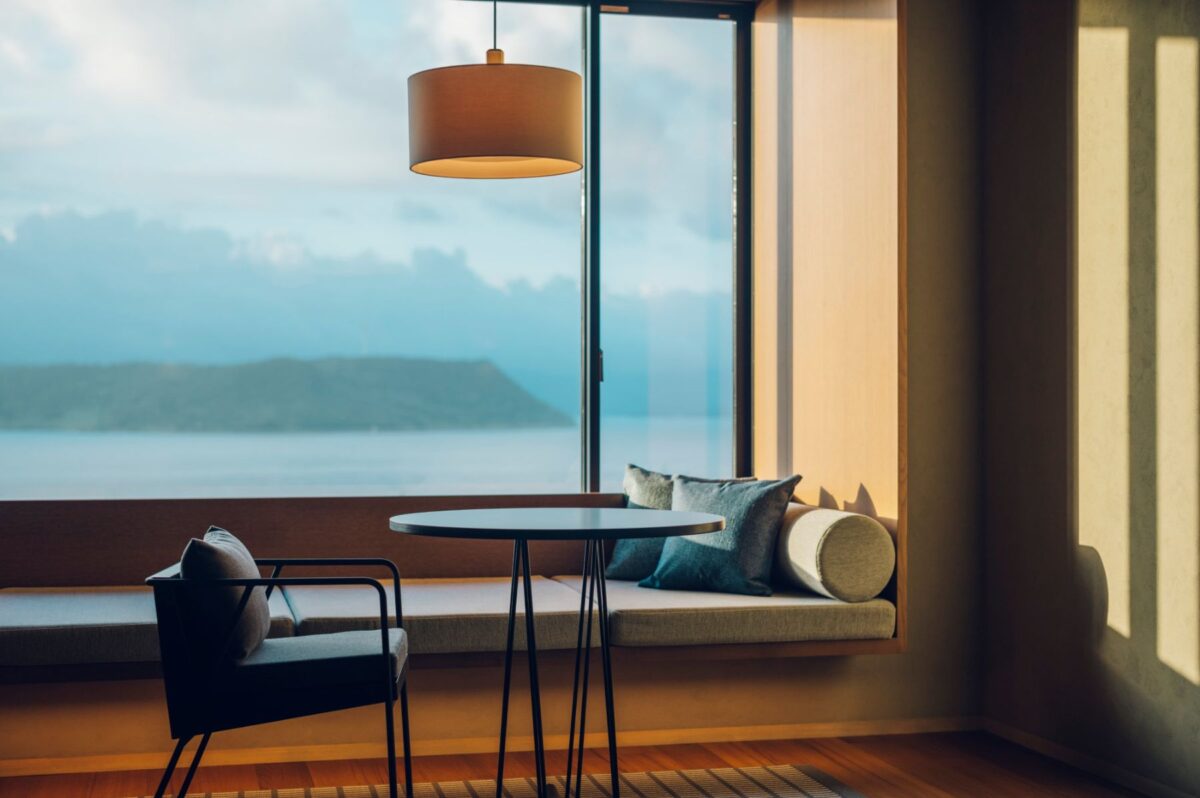 長崎県平戸市にできた全5室のホテルkikka hiradoのためのライブラリー「海と翻訳 / Sea and translation」。