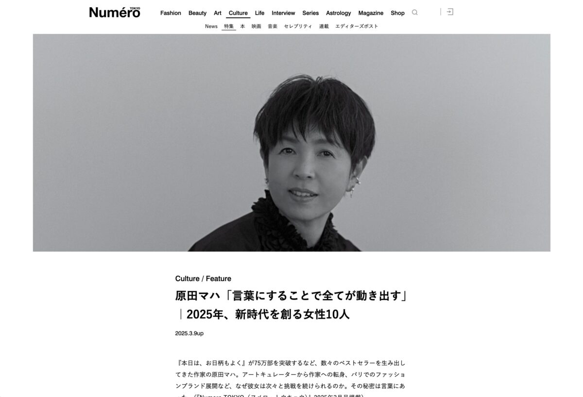 「Numero TOKYO 2025年3月号」の新時代を創る女性特集において、女性10人のうちのひとりとして登場した小説家、原田マハにインタビュー。