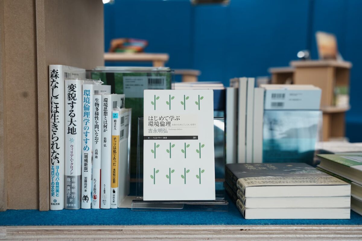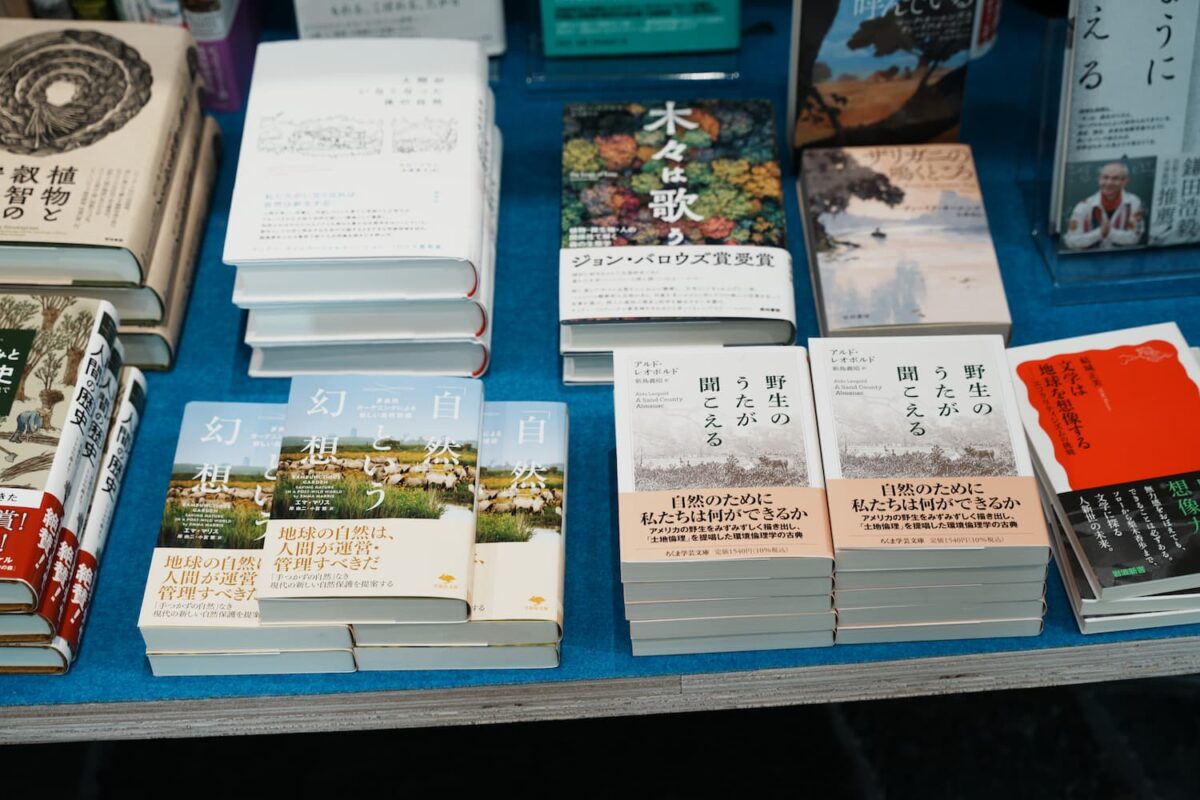「人と自然の可能性をひろげる」というパーパスを書店のコンセプトとし、自然科学や哲学、アート、遊びなど多様な視点を通じて、人と自然との関係を再考するための本を1000冊ほど選書。会場BGMは、フィールド録音作家・柳沢英輔さんが長年録り続けてきた環境音を今回のために再構成してもらった。