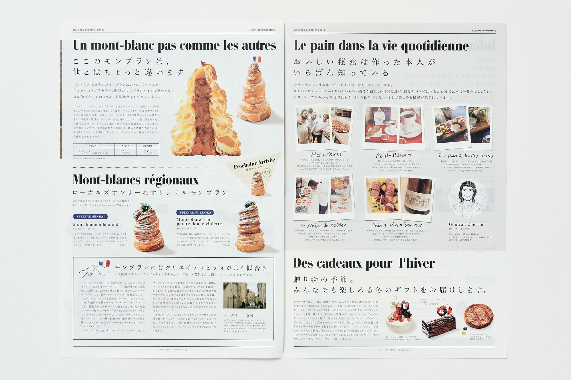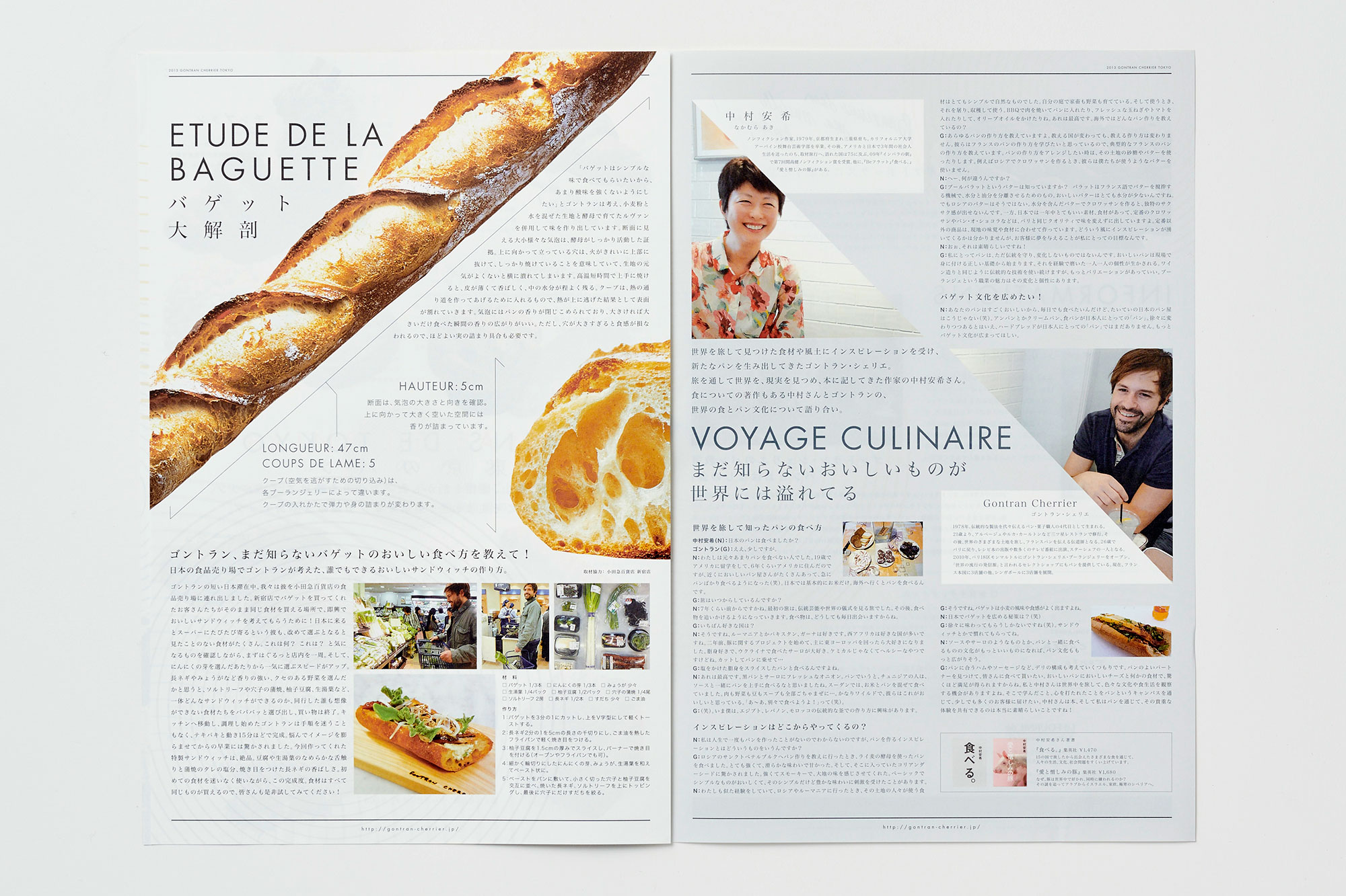 「JOURNAL SANDARD」や「EDIFICE」、「J.S. BURGERS CAFE」などの事業を手がけるベイクルーズグループがオープンしたパリ発のパン屋「ゴントラン・シェリエ」(現BOUL’ANGE/ブールアンジュ)のためのタブロイドを編集、製作した。