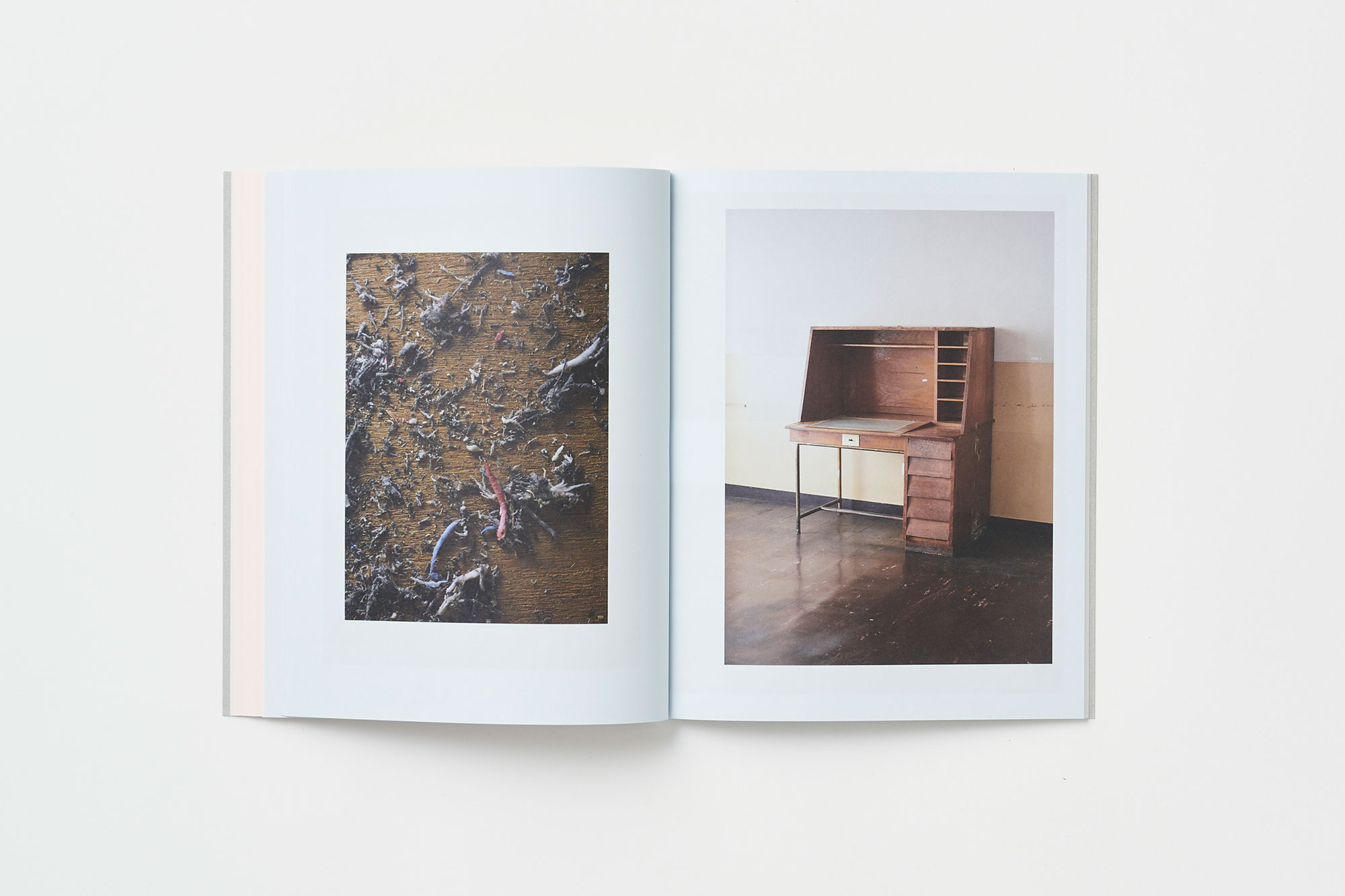 1巻では、建物や空間を記録。引っ越しを済ませ、テーブルや椅子もある程度片付けられた中、外観をはじめ室内の床や壁、扉やロッカー、庭など様々な場所に人と過ごした時間の痕跡が残されていた。象徴的に生えていた桜の木が満開のとき、窓越しに見ていたであろう景色を開花を待って撮影している。