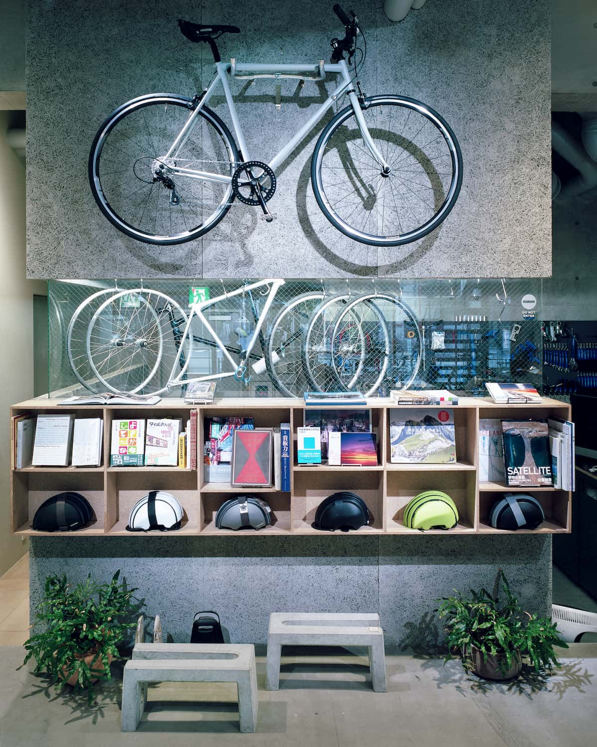 自転車を目的とするのではなく、ツールとしてどう自分の生活や思想、行動に活かしていくかということをコンセプトとして選書を行った。イラストレーターで未来学提唱者のひとりでもある真鍋博の『自転車讃歌』やファッションデザイナー、ポール・スミスのルーツでもある自転車についてのビジュアルブック『Paul Smith’s Cycling Scrapbook』、自転車を愛した忌野清志郎の『サイクリング・ブルース』など自転車を扱った本を中心に、ツーリングコースとしてのランドスケープの写真集や看板文字などのタイポグラフィの本、自転車のあるライフスタイルのための都市計画の本など、様々に展開している。