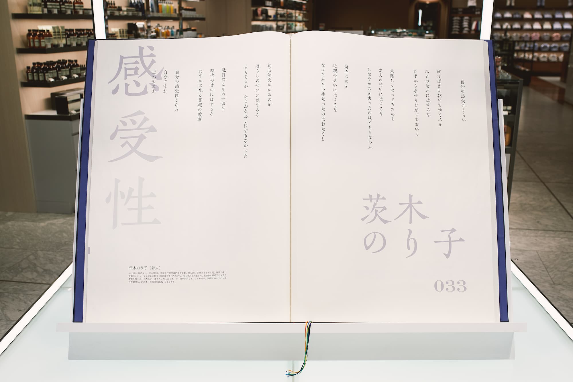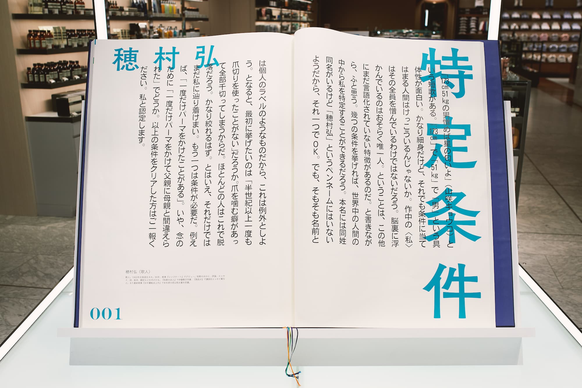 1階では「自分らしさの文体練習」と題して、書き手の自分らしさではなく、”自分らしさ、とは何か”について、書き下ろしから歌詞まで、43人の言葉を集めた。
