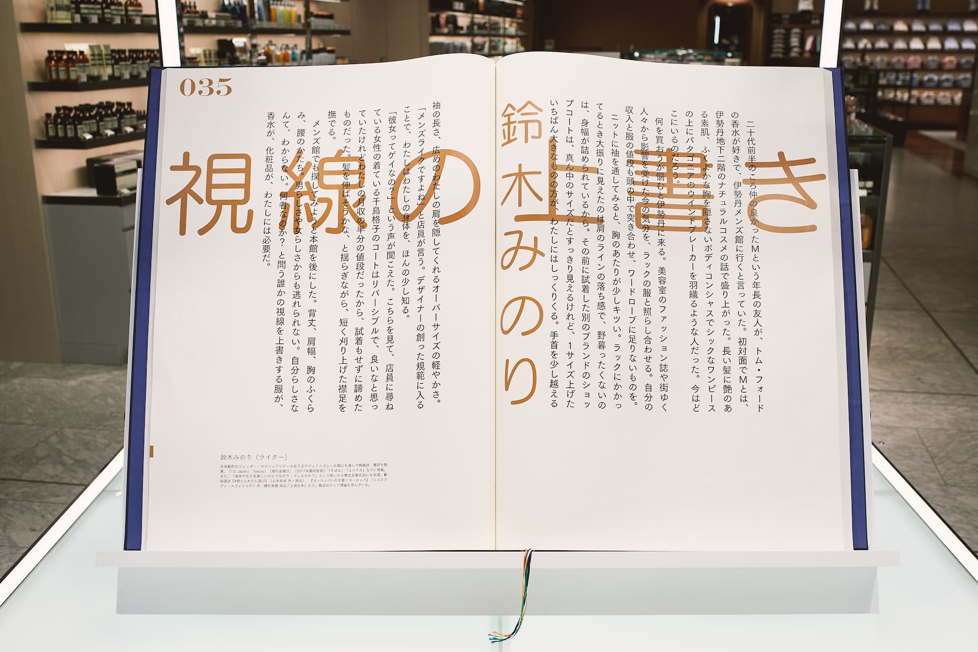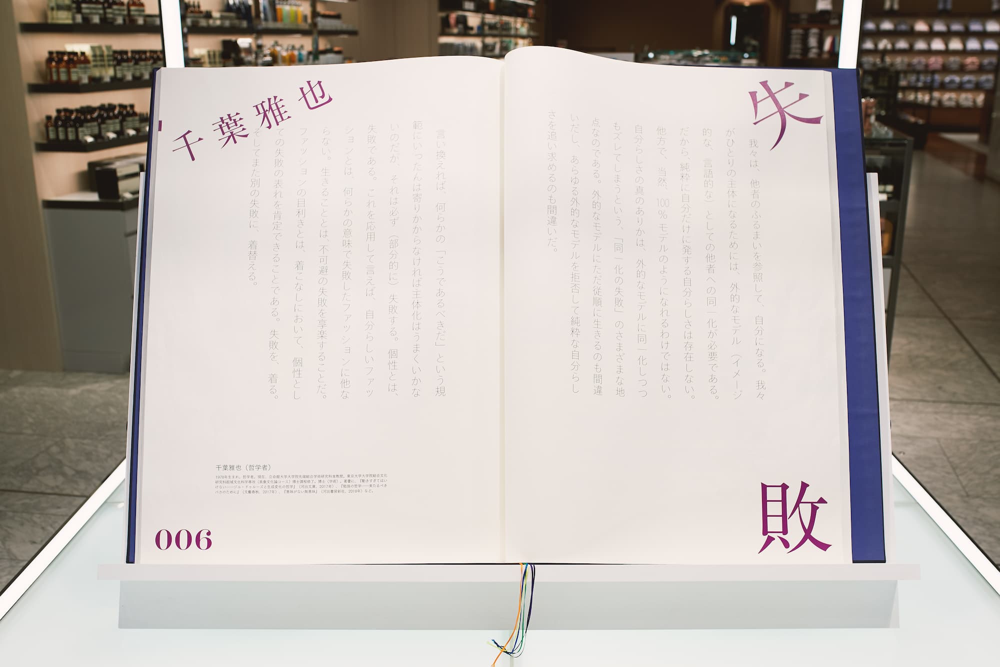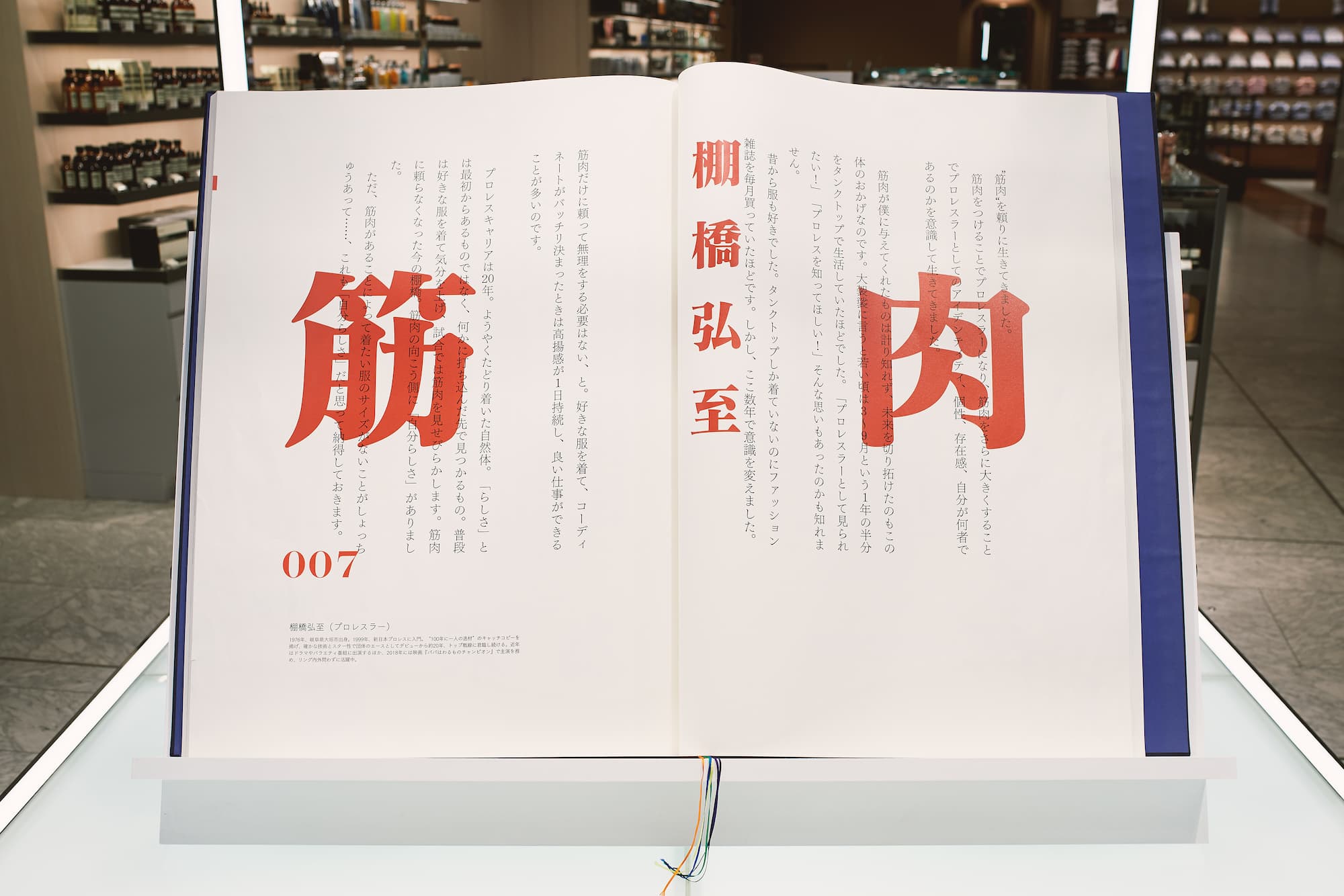 ステレオタイプな「男らしさ」ではなく、ひとりの人間としての「らしさ」を叶える、メンズファッションストアであることを表現するべく、1、2、4、6階に「ストア・アイデンティティ」において、「文体物体身体解体練習 -EXCERSISES in PHYSICAL THINGS-」をテーマの展示とした。