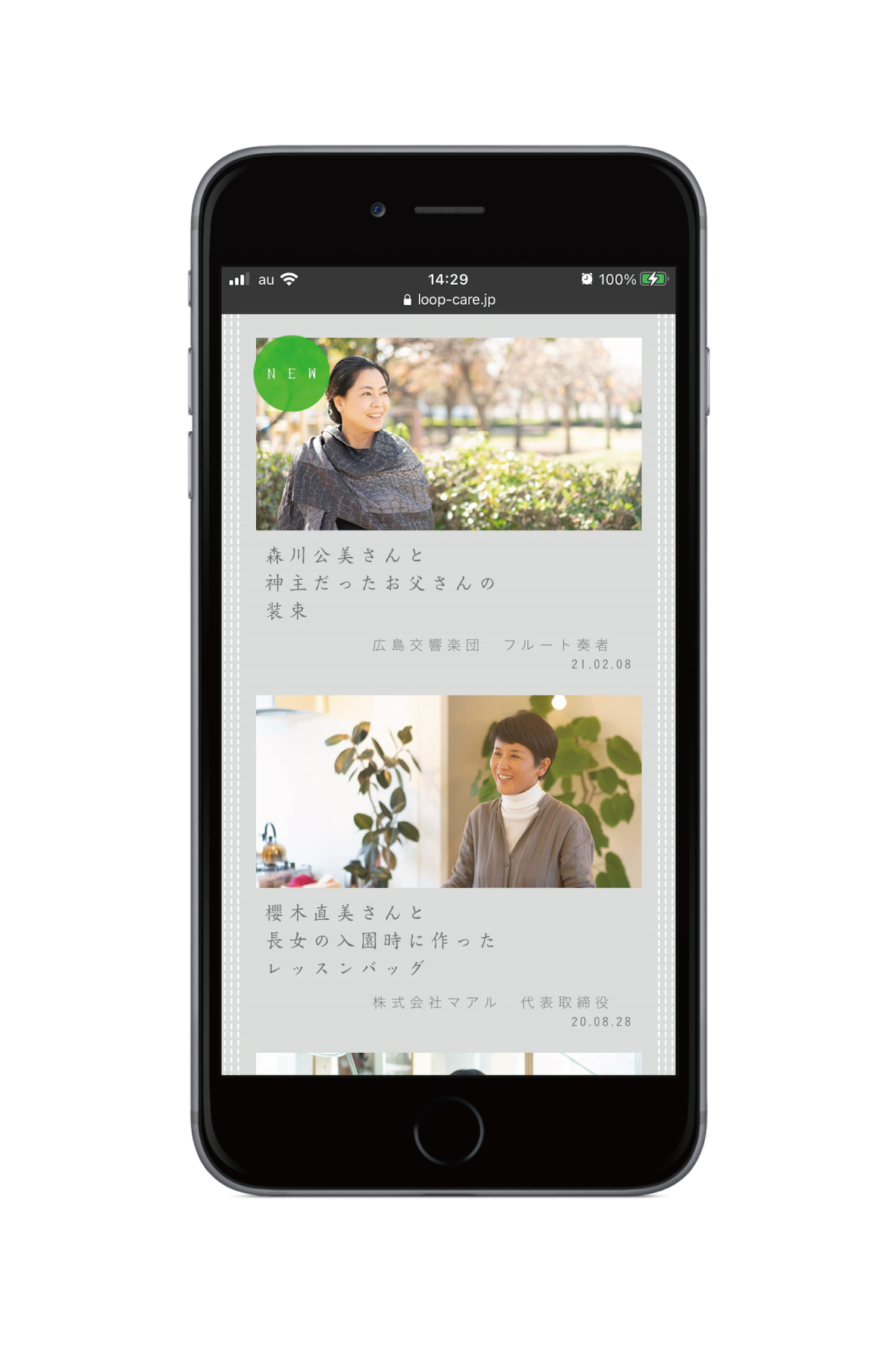 そのサイト内で、ループケアを利用してくれる人にインタビューを行っている。