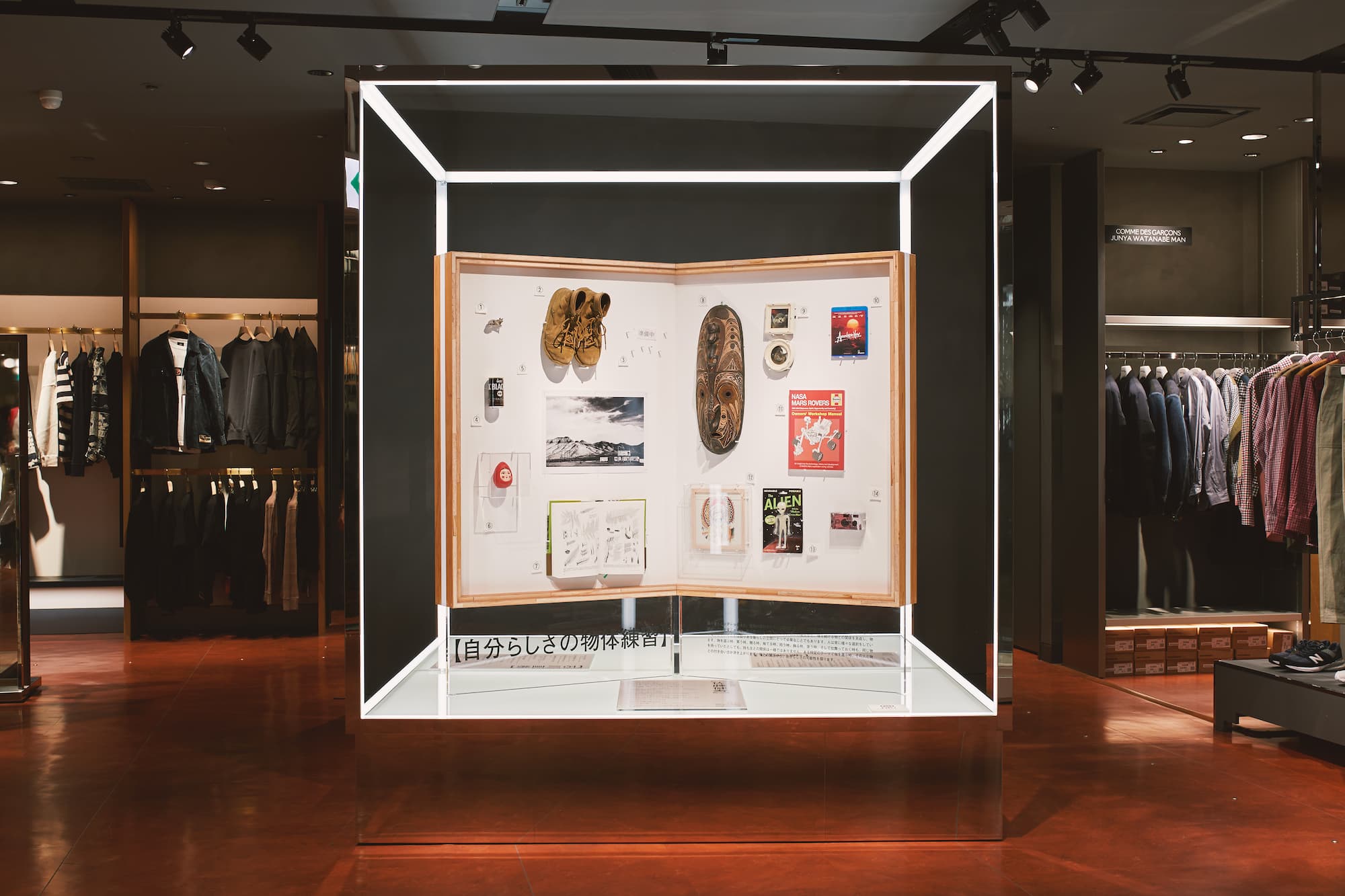 ステレオタイプな「男らしさ」ではなく、ひとりの人間としての「らしさ」を叶える、メンズファッションストアであることを表現するべく、1、2、4、6階に「ストア・アイデンティティ」において、「文体物体身体解体練習 -EXCERSISES in PHYSICAL THINGS-」をテーマの展示とした。